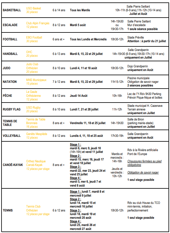 L’opération est menée la Ville d’Orthez en partenariat avec certains clubs sportifs et toutes les activités sont encadrées par des animateurs référencés.